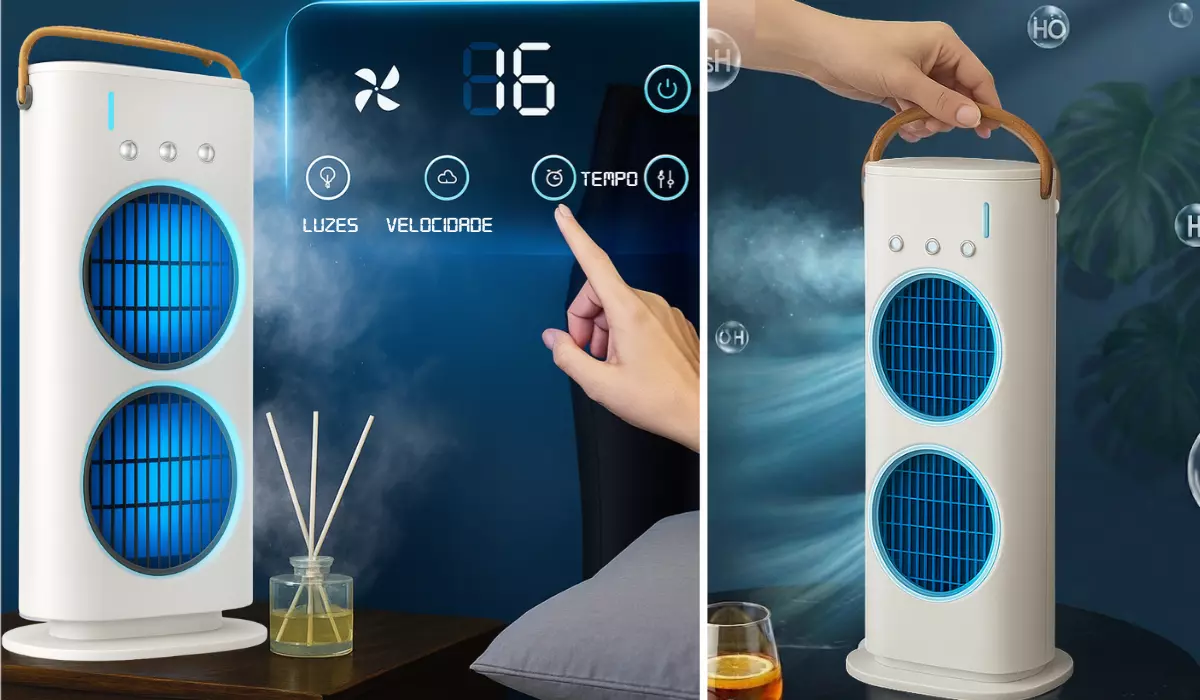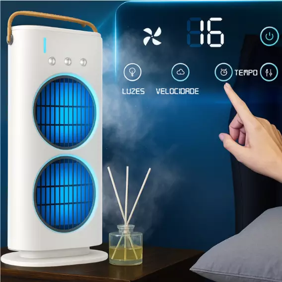 Compacto e fácil de usar! Ar Condicionado três em um: resfria, umidifica e ventila. Ideal para quem sofre de alergias!